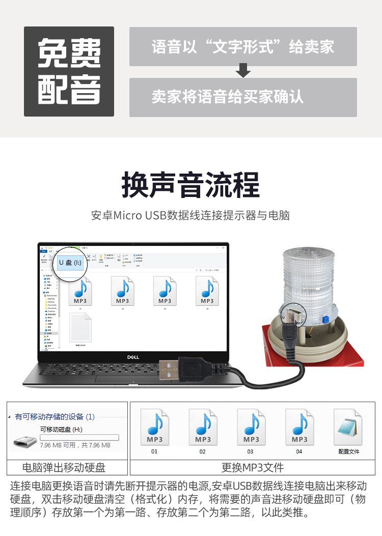 红外人体感应语音提示器警灯语音双重智能提示