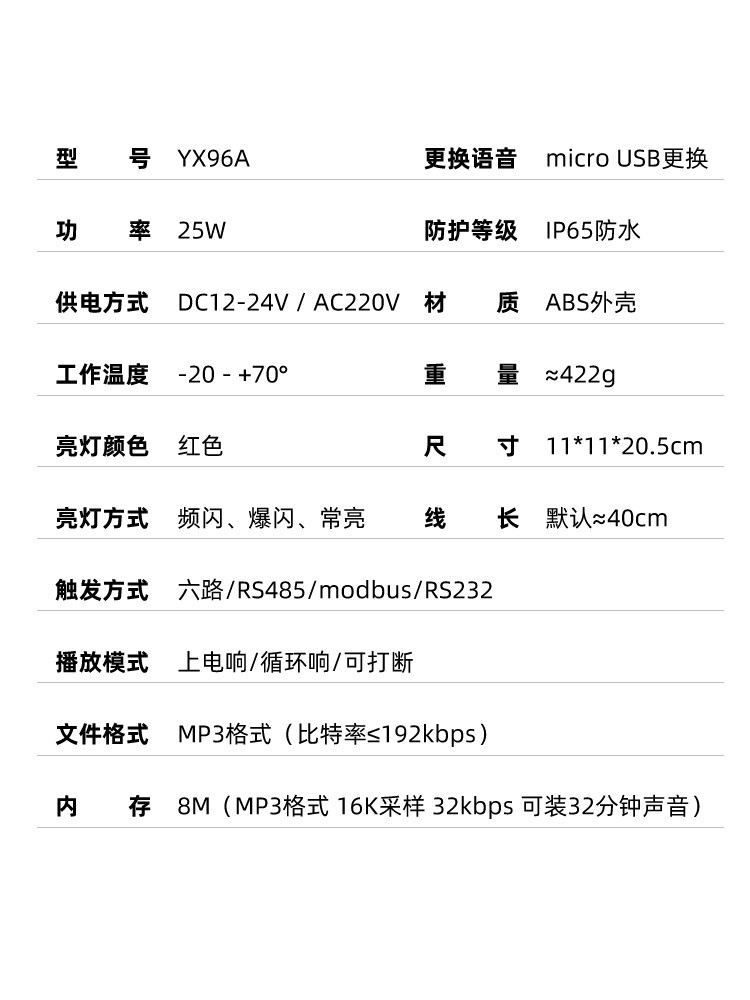 本公司推出的YX96R-4L声光报警器,具有低功耗、长寿命、安装方便灵活等特点,支持USB自行更换报警语音文件;产品采用多路开关量控制,控制方式简单方便,可适用于多种环境恶劣的场合,比如:红色的灯光可以用于在事故现场的声音报警和闪光报警,只要触发即发出闪光信号和声报警信号,让现场人员迅速知道现场已发生事故或设备故障提示,尽快采取相应措施,避免产生重大人员、财物损失;通过智能控制模块还可接入分布智能火灾自动报警控制系统中。